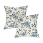 【並行輸入品】Fjfz シノワズリー 花柄 装飾クッションカバー 18 x 18 2枚セット ヴィンテージ ブルー ホワイト 牡丹 花 トラディ