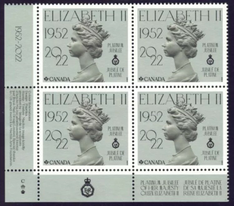 カナダ sc#3317 エリザベス2世 プラチナ ジュビリー、LL 刻印ブロック、ミント-NH
