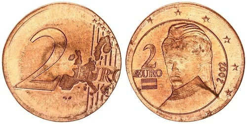 オーストリア 2ユーロ ミスプリント 2002年 5セント ブランクミント - BU 118488-