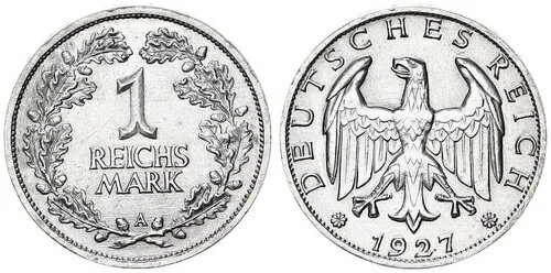 ワイマール 1 マルク 1927 希少年式 ミントマーク ミントステート 121722