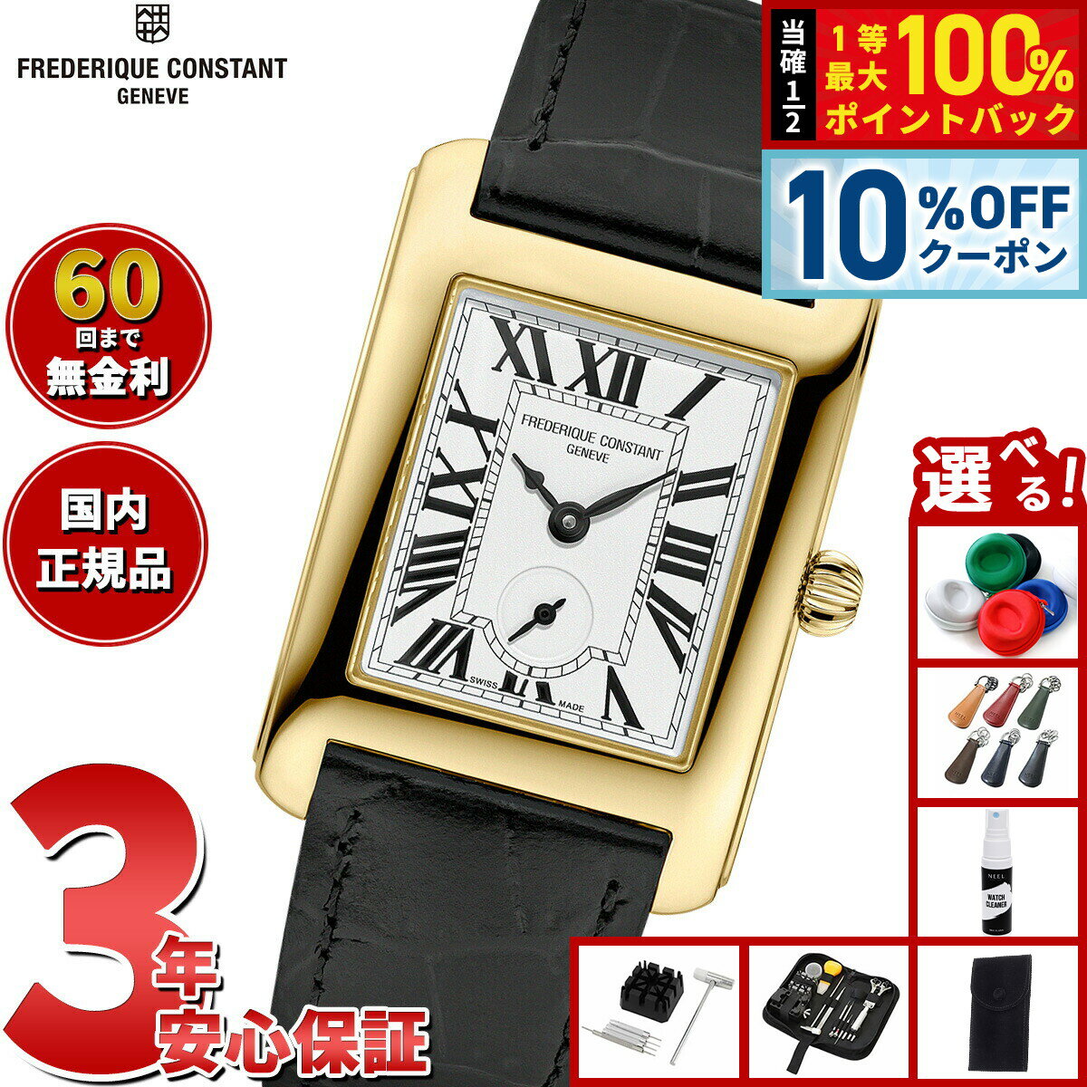 【20日当店限定Wイベント!10%OFFクーポン&抽選で10000ptポイントバック】【選べるノベルティー付き】【60回分割手数料無料!】フレデリック コンスタント FREDERIQUE CONSTANT クラシック カレ スモールセコンド FC-235S2C6B フレデリックコンスタント