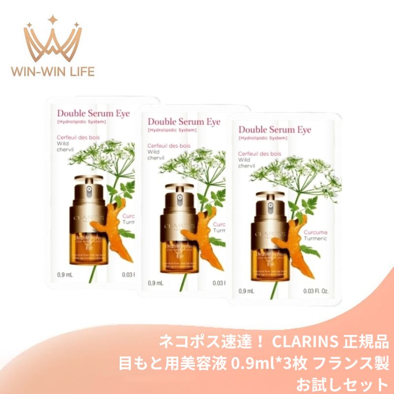 ネコポス速達!クラランス ダブル セーラム アイ〈目もと用美容液〉0.9ml*3枚 合計2.7ml フランス製 お試しセット サシェサンプル トラベルサイズ アイ美容液 13種の植物エキス 黄金バランス 角層のすみずみまで浸透 保湿 うるおい ハリ CLARINS clarins