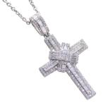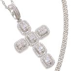 ネックレス メンズ K18WG 18K 18金 ホワイトゴールド バゲットカット ダイヤモンド クロス 十字架 50cm アズキチェーン付き