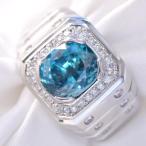 指輪 印台 メンズリング プラチナ ブルージルコン ダイヤモンド Pt900 幅広 大粒 カラーストーンリング 30代 40代 50代
