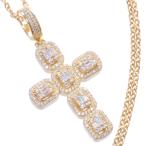 ネックレス メンズ K18 18K 18金 イエローゴールド バゲットカット ダイヤモンド クロス 十字架 50cm アズキチェーン付き