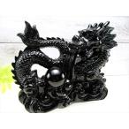 玉持ち龍神 瑠璃製 ブラックカラー 龍 置物 横幅約145mm 重さ890g 大吉開運 インテリアやお部屋のアクセントに