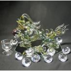 クリスタル 瑠璃龍 大( クリスタル水盃&アクリルダイア(10個)&八角鏡台座付 ) 風水グッズ 開運グッズ 幸運の置物 龍の置物 辰年 干支グッズ