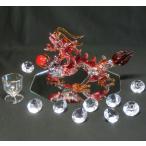 クリスタル 赤龍 小( クリスタル水盃&アクリルダイア(10個)&八角鏡台座付 ) 開運グッズ ハンドメイド 龍の置物 レッドドラゴン 赤龍帝 サンキャッチャー