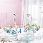 9k水晶 クリスタル スワン 白鳥 置物 ガラス置物 ペアセット 2点セット インテリア プレゼント 贈り物 ロマンチック クリア 彼女