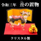クリスタル ガラス製 開運 干支の置物 丑 ウシ 大サイズ 金俵 赤い敷物 台座付 風水グッズ 開運グッズ 幸運の置物 ウシの置物 2021年の干支 丑年の置物 牛