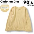 90s ヴィンテージ クリスチャン ディオール Christian Dior ウール x シルク モヘヤ調 クルーネック ニット セーター M クリーム レディース ♪