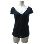 クリスチャンディオール Christian Dior 美品 フレンチスリーブ カットソー Tシャツ ギャザー 紺 ネイビー 42 約M IBO79