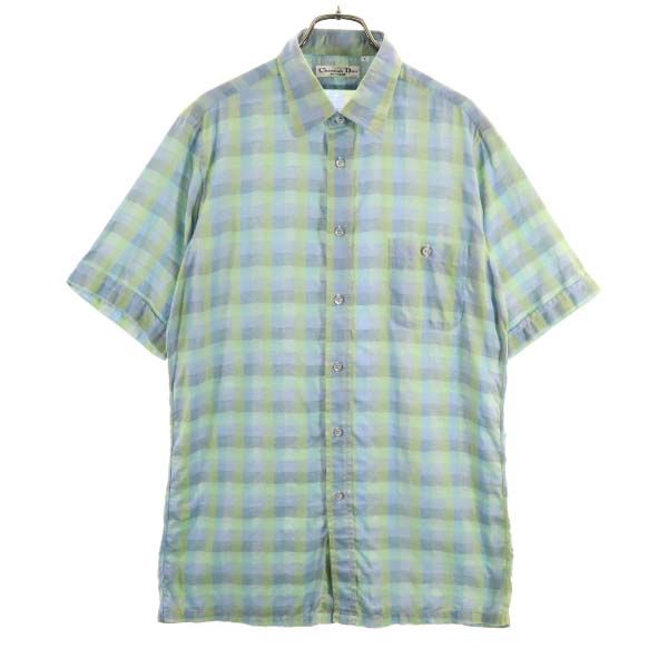 古着 Christian Dior クリスチャンディオール 格子柄 半袖 シャツ L ブルー系 メンズ 【中古】 【PD】