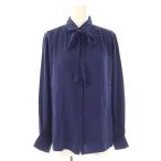 クリスチャンディオール Christian Dior CD総柄 シルク100% ブラウス シャツ 長袖 ボウタイ付き M ネイビー /ES ■GY53 レディース