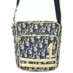 クリスチャンディオール トロッター オブリーク ショルダーバッグ ベージュ ネイビー キャンバス レザー Christian Dior 【中古】