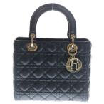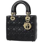 クリスチャンディオール レディディオール ミディアム カナージュ ラムスキン レザー 2WAY ハンド ショルダーバッグ ゴールド金具 ブラック