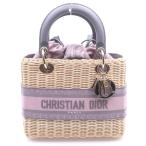 クリスチャンディオール レディディオール ミディアム ウィッカー ハンドバッグ ショルダーバッグ カゴバッグ ラタン×レザー×キャンバス