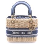 クリスチャンディオール レディディオール ウィッカー ミディアム 2WAY ハンドバッグ ショルダーバッグ ベージュ×ネイビー ラフィア