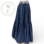 クリスチャンディオール CHRISTIAN DIOR ボトムス コットン ブルー ロゴベルト ロングスカート デニム