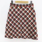 クリスチャンディオール Christian Dior 051J32A1282 ボックスプリーツ チェック柄 膝丈 フレアスカート スカート 絹 シルク 38 茶系 ブラ