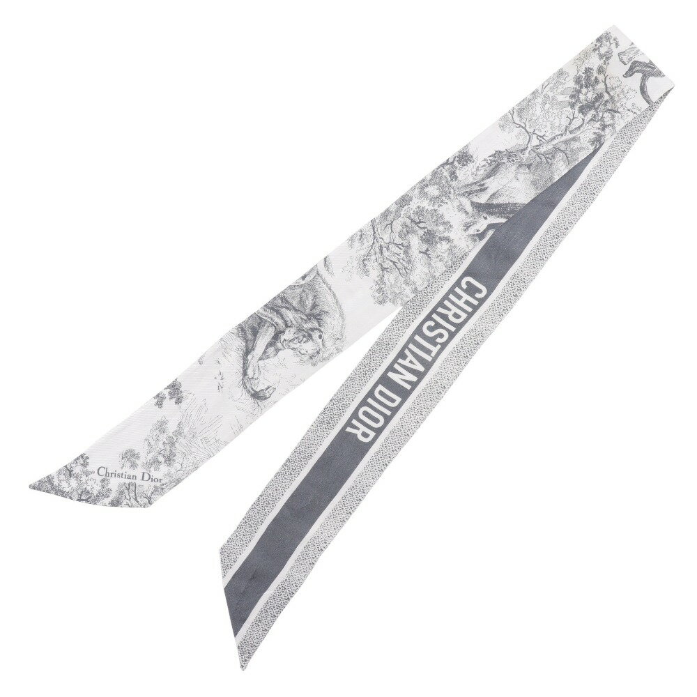 【スーパーセール10%OFF対象】クリスチャンディオール Dior ミッツァ スカーフ トワル ドゥ ジュイ ソヴァージュ リボンスカーフ 15JOU106I602 シルク グレー Mitza レディース【中古】