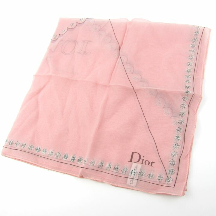 クリスチャン・ディオール スカーフ ピンク×アイボリー 中古 ABランク Christian Dior| レディース 女性用 ロゴ 刺繍 【ネコポス送料無料】