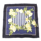 クリスチャンディオール Christian Dior スカーフ 絹 シルク 紺 ネイビー 白 ホワイト ドット柄 花柄 ロゴ バラ 総柄 /GV ■GY11