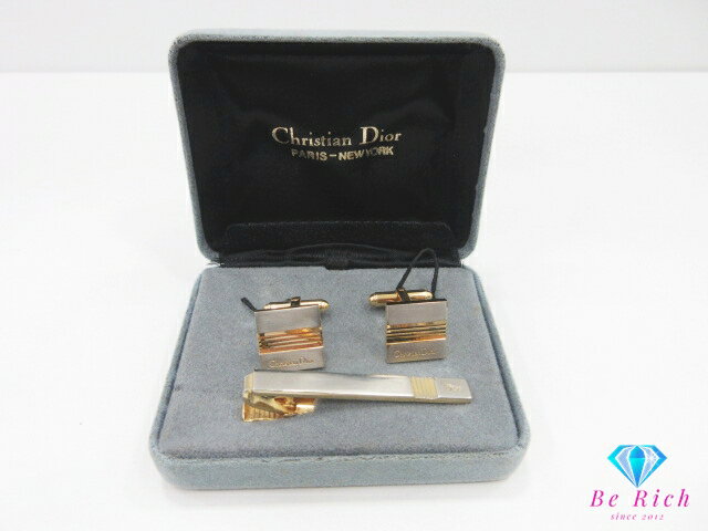クリスチャン ディオール Christian Dior ネクタイピン カフス セット シルバー ゴールド メッキ ロゴ タイピン カフリンクス ヴィンテージ ビジネス スーツ 小物 【中古】【送料無料】ba3171