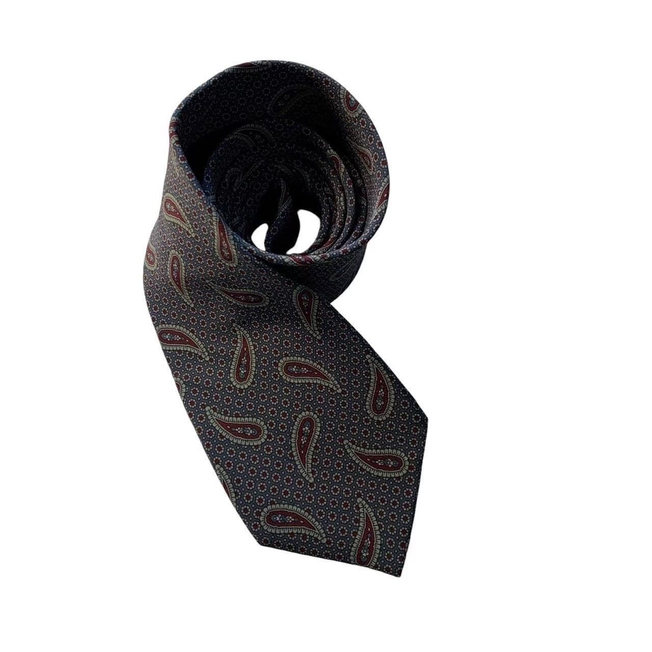 [中古]Christian Dior クリスチャンディオール ディオール ネクタイ ブランド 小物 スーツ ファッション ビジネス ネイビー 紺 ワイン 赤 絹 シルク ペイズリー 総柄 紳士 メンズ