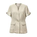 10c29 Christian Dior クリスチャンディオール ノーカラージャケット 半袖 フォーマルスーツ セレモニー リネン混 MD2GHA030 13 ベージュ系u02t