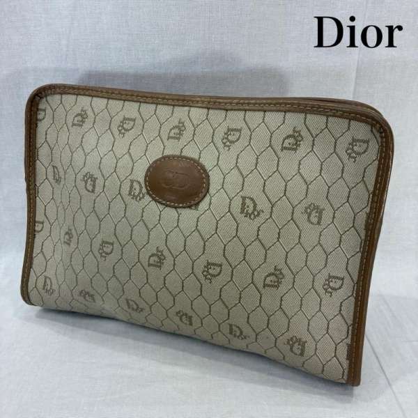 クリスチャンディオール セカンドバッグ クラッチバッグ ハニカム柄 総柄 ベージュ フランス製 メンズ 表記無し【USED】【古着】【中古】50136726