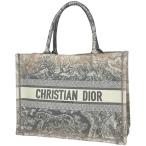 クリスチャンディオール Christian Dior ブックトート ミディアム トワル ドゥ ジュイ エンブロイダリー トートバッグ キャンバス グレー レディース 中古