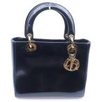 クリスチャンディオール レディディオール トロッター 2WAYハンドバッグ トートバッグ ショルダーバッグ ブラック エナメル ゴールド金具