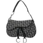 クリスチャンディオール Christian Dior トロッター柄 サドルバッグ ハンドバッグ ワンショルダー ショルダーバッグ キャンバス ブラック レディース 中古