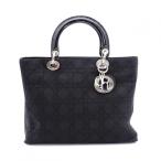 Christian Dior クリスチャンディオール レディディオール ミディアム ハンドバッグ トートバッグ ブラック コットン シルバー金具