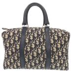 美品 クリスチャンディオール ヴィンテージ トロッター ネイビー ベージュ キャンバス/レザー ハンドバッグ ボストンバッグ 600698