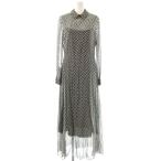 クリスチャンディオール Christian Dior フレアワンピース シアー シースルー マキシ ロング 長袖 レギュラーカラー ドット柄 黒
