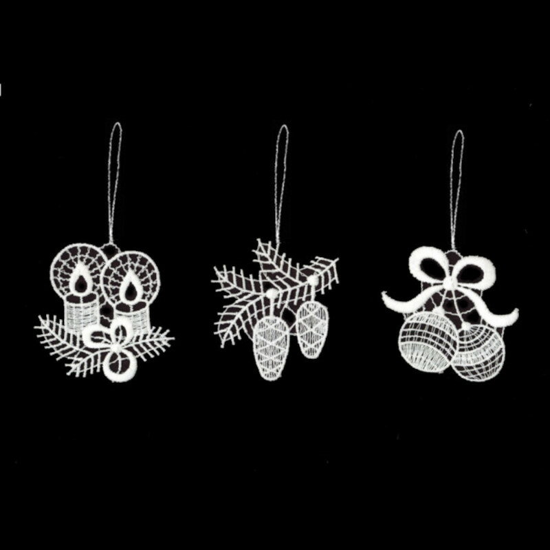 【スーパーSALE 30%OFF】Vogel ドイツ プラウエン レース クリスマス オーナメント 7cm キャンドル / 松ぼっくり / ボール 3個セット 北欧 クリスマス デコレーション 雑貨 モダン おしゃれ nest 【メール便配送】