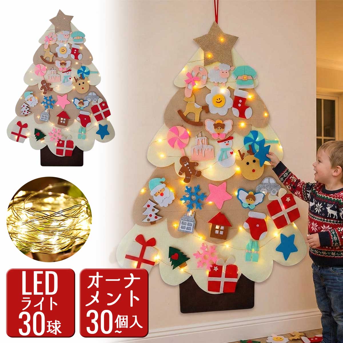 【15%OFFクーポン】【LEDライトセット】クリスマスツリー フェルト 白 キット フェルト クリスマスツリー 壁 壁掛け クリスマス タペストリー 手作り 知育 DIY LED ライト オーナメント 布 電飾 セット 飾り 壁 ツリー【全国送料無料・最強配送即納】
