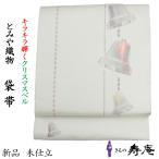 帯 袋帯 とみや帯 クリスマス ベル 雪ダルマ ツリー セミフォーマル カジュアル 白 キラキラ 華やぐ 送料無料 新品 未仕立 仕立て込み