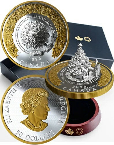 2020年 クリスマストレインツリー 50ドル 5オンス 純銀プルーフカナダコイン