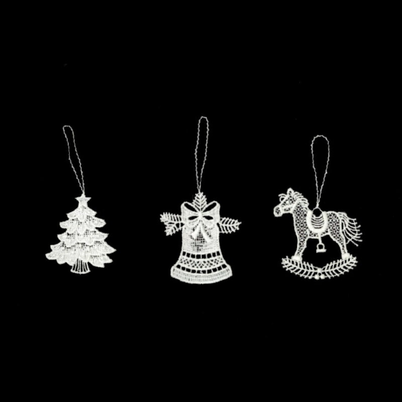 【スーパーSALE 30%OFF】Vogel ドイツ プラウエン レース クリスマス オーナメント 6cm ツリー / ベル / ロッキングホース 3個セット 北欧 クリスマス デコレーション 雑貨 モダン おしゃれ nest 【メール便配送】