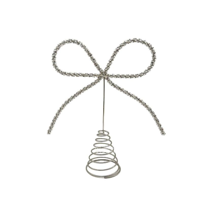クリスマスツリー トップ クリスマス 飾り ツリートップ スター ライト付き 蝶結び キラキラ デコレーション イベント パーティー ゴールデン シルバー(x1440)