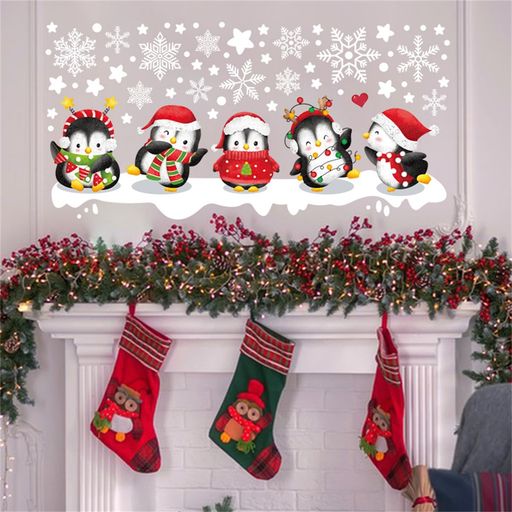 WALLMEIウォールステッカークリスマスおしゃれ5クリスマスペンギン雪の結晶壁紙シールはがせるクリスマスオーナメント窓飾りウォールシール壁飾りchristmasdecorations子供リビングルーム寝室