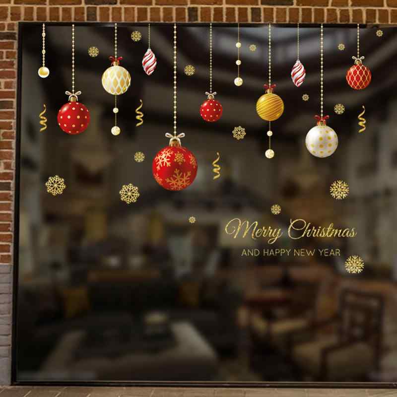 ウォールステッカー クリスマス ゴールド 自己粘着 ガラス ショーウィンドウ ドア 飾り付け デコレーション クリスマスオーナメント カラフルボール シール 家庭用