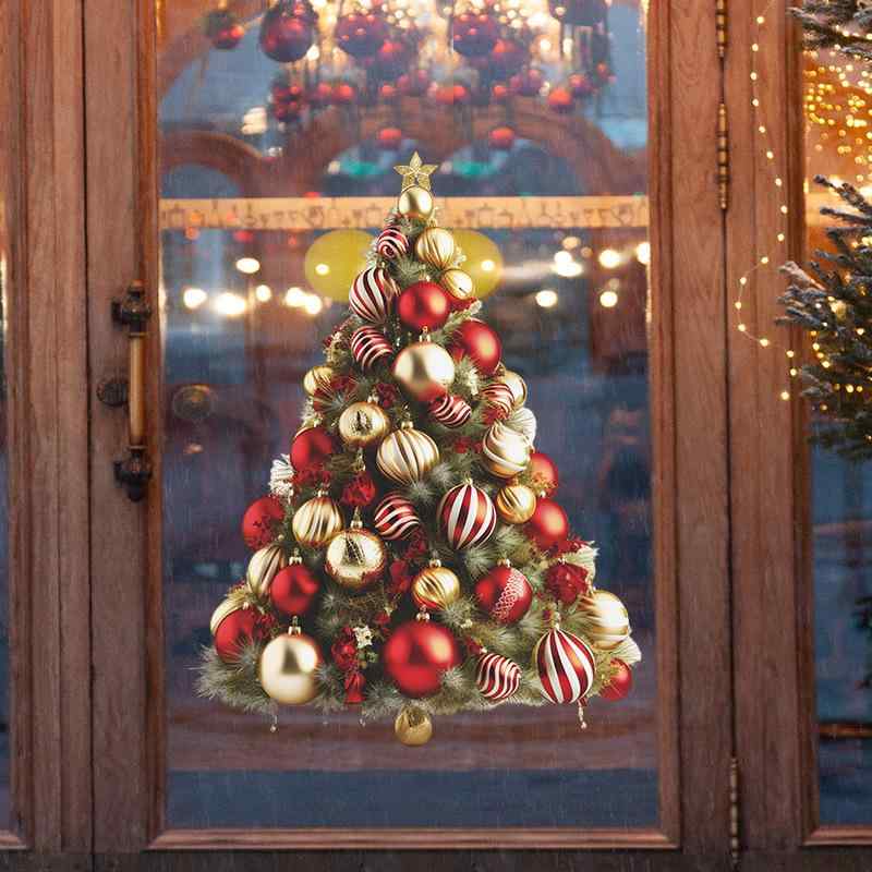 ウォールステッカー クリスマスツリー クリスマスオーナメント 壁紙シール 飾り デコレーション リビング 寝室 玄関 ドア ショーウィンドウ 窓 室内 店舗用 貼るだけ 自己粘着 剥がせる 簡単 おしゃれ PVC製