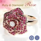 H&C K18PG ルビー&ダイヤモンド 薔薇 リング ダイヤモンド リング ルビー カラーストーン ばら 0.1ct 18金 ゴールド バラ ギフト 誕生日 花 TNSR-0056