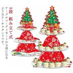 ケーキスタンド クリスマス飾り 紙製 デザートタワー お菓子 3段 カップケーキ デザートスタンド アフタヌーンティー 再利用可能 誕生日 パーティー