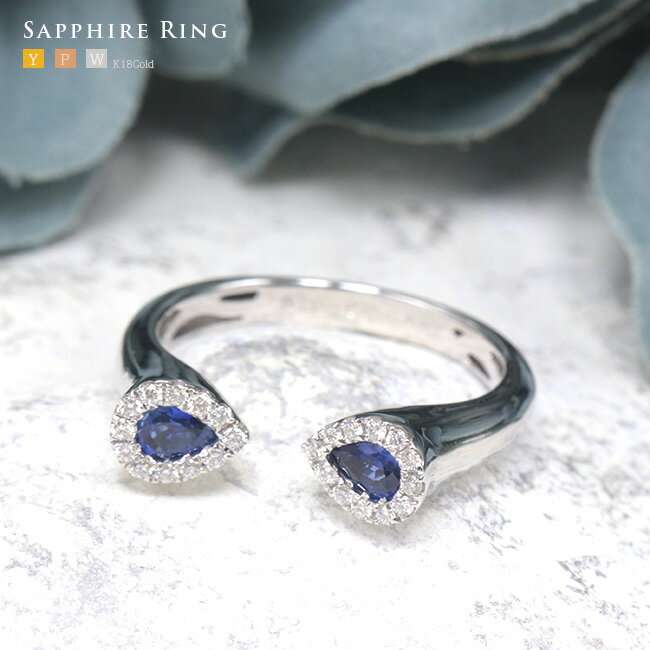 サファイア ダイヤモンド リング フォークリング ペアシェイプカット K18ゴールド リング 【母の日 プレゼント ギフト お祝い ジュエリー 誕生日 記念日 クリスマス】