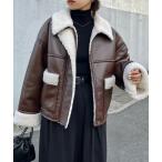 コート アウター フェイクレザー切替ボアショートブルゾン レディース